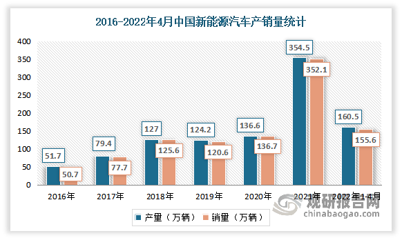 而雖然汽車整體市場(chǎng)表現(xiàn)低迷,但整體依然保持較高的水平,尤其是近幾年來(lái)隨著環(huán)?;?、綠色化發(fā)展成為主流趨勢(shì),新能源汽車市場(chǎng)表現(xiàn)活躍。隨著新能源汽車的進(jìn)一步推廣,汽車產(chǎn)銷量也有所增加。數(shù)據(jù)顯示,2021年我國(guó)汽車保有量為3.02億輛,同比增長(zhǎng)7.5%;汽車產(chǎn)量為2608.2萬(wàn)輛,同比增長(zhǎng)3.4%;汽車銷量為2627.5萬(wàn)輛,同比增長(zhǎng)3.8%。但進(jìn)入2022年,由于疫情多點(diǎn)散發(fā)等因素影響,汽車產(chǎn)銷均有所下降。2022年1-4月,我國(guó)汽車產(chǎn)銷分別完成769.0萬(wàn)輛和769.1萬(wàn)輛,同比分別下降10.5%和12.1%。