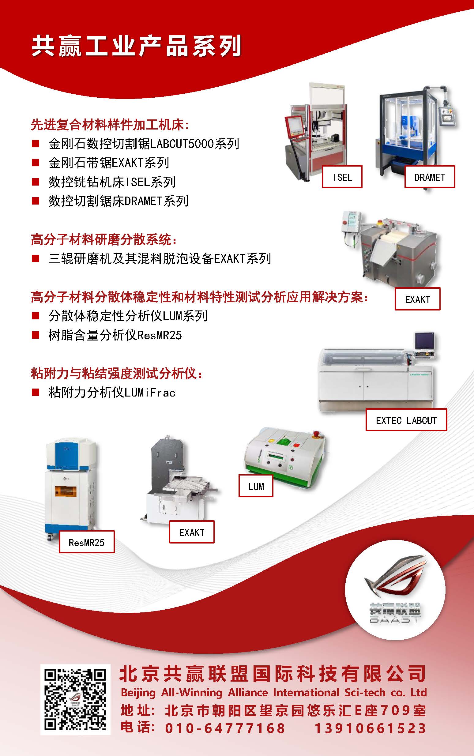 北京共贏聯(lián)盟國(guó)際科技有限公司專(zhuān)注于提供先進(jìn)復(fù)合材料性能檢測(cè)、試樣加工技術(shù)和儀器設(shè)備,包括快速無(wú)損檢測(cè)樹(shù)脂基體特性與工藝評(píng)價(jià);先進(jìn)復(fù)材樣件加工機(jī)床,膠黏劑的粘附力與粘結(jié)強(qiáng)度測(cè)試分析整體解決方案,高分子材料研磨分散技術(shù)及其穩(wěn)定性測(cè)試分析等。