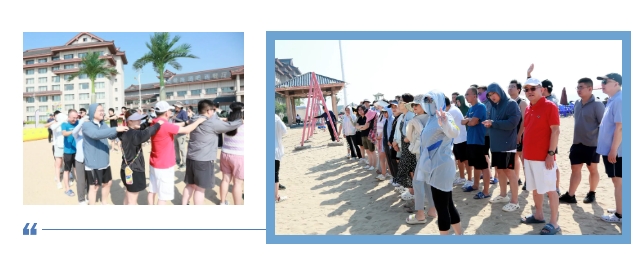 清晨,陽光灑在沙灘上,溫暖而明亮。伙伴們精神抖擻地集合,準(zhǔn)備迎接豐富多彩的團(tuán)建活動。拓展訓(xùn)練中,來自共贏聯(lián)盟和艾佧科技的成員們隨機(jī)分組,共同協(xié)作。無論是充滿挑戰(zhàn)的團(tuán)隊競賽項目,還是考驗?zāi)醯暮献饔螒颍蠹叶既σ愿?,為了團(tuán)隊的榮譽而拼搏。在這個過程中,原本來自不同公司的伙伴們迅速融合在一起,彼此之間的距離被不斷拉近,信任與默契也在悄然生長。