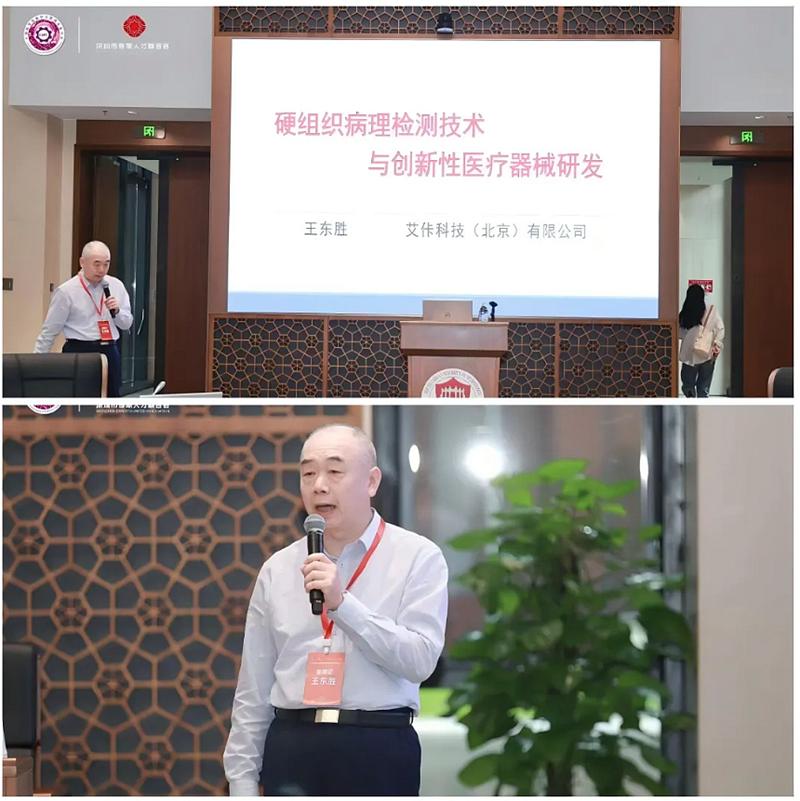 北京共贏聯(lián)盟中心實(shí)驗(yàn)室艾佧科技團(tuán)隊(duì)在總經(jīng)理?xiàng)盍?qiáng)技術(shù)總監(jiān)王東勝的帶領(lǐng)下,參加了本次大會(huì)。由王東勝教授在實(shí)驗(yàn)病理學(xué)新技術(shù)論壇進(jìn)行了“硬組織病理檢測(cè)技術(shù)與創(chuàng)新醫(yī)療器械研發(fā)”精彩報(bào)告,他從硬組織病理技術(shù)的基礎(chǔ)概念出發(fā),詳細(xì)闡述了硬組織病理技術(shù)的特點(diǎn)與應(yīng)用,并圍繞硬組織技術(shù)能力、硬件條件,多角度的剖析了創(chuàng)新醫(yī)療器械研發(fā)的現(xiàn)狀與創(chuàng)新發(fā)展,并表示硬組織病理技術(shù)是創(chuàng)新性醫(yī)療器械研發(fā)中不可缺少的驗(yàn)證手段。