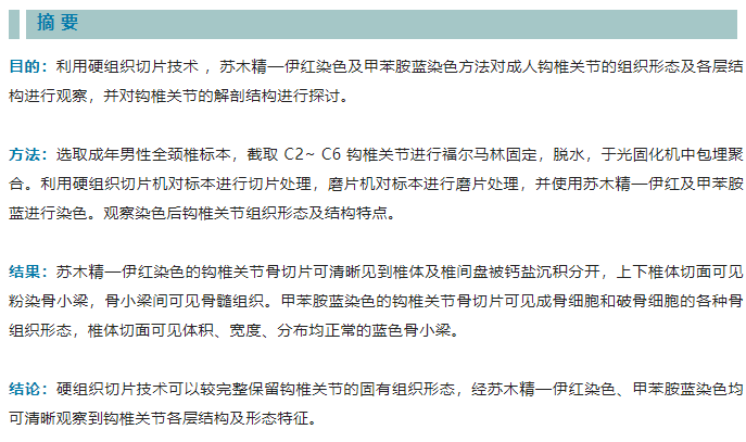 基于硬組織切片染色的頸椎鉤椎關(guān)節(jié)的解剖研究