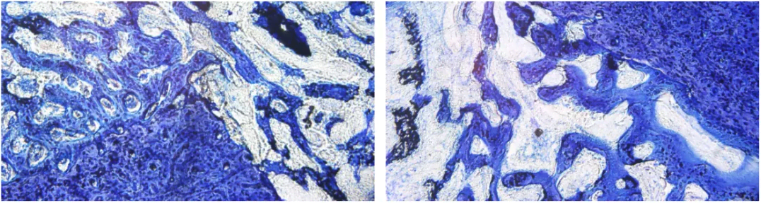 圖4 兔股骨植入(甲苯胺藍(lán)染色)