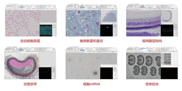 BQ生命科學(xué)計(jì)量系統(tǒng)可以計(jì)量各種軟組織石蠟切片的組織病理形態(tài),適用于動(dòng)物和人體器官常規(guī)切片、水生物切片、植物切片、種子切片等。廣泛應(yīng)用于組織基本形態(tài)分析,纖維化分析,細(xì)胞自動(dòng)計(jì)數(shù),細(xì)胞增值分析,細(xì)胞mRNA量化分析,免疫組化/熒光分析,血管形態(tài)分析,視網(wǎng)膜形態(tài)分析與細(xì)胞計(jì)數(shù)分析,骨骼肌表型分析,細(xì)胞繪圖分析,體視學(xué)分析,受體結(jié)合和密度測(cè)定,神經(jīng)軸突計(jì)量分析。為各類物種的組織學(xué)、病理學(xué)研究和診斷提供更為精準(zhǔn)的定性/定量評(píng)價(jià)依據(jù)。